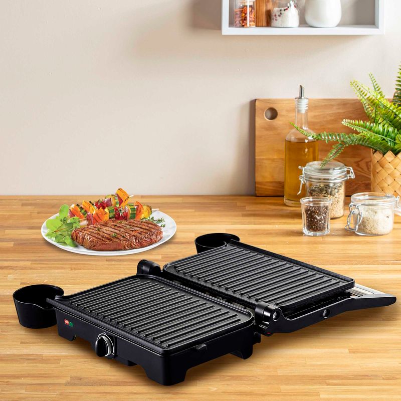 COCCIÓN SALUDABLE: Con placas antiadherentes y apertura de 180°, cocina sin aceite y mantén el sabor, asegurando que tus comidas sean saludables y deliciosas sin renunciar a la calidad.