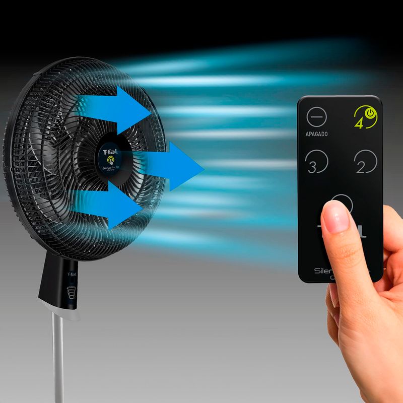 Ventilador de Pedestal T-Fal Silence Force con Control Remoto: Ultra potente y silencioso al alcance de tu mano.